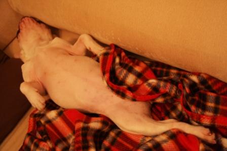 Leafの寝ているブランケットの上にお邪魔したい様子。