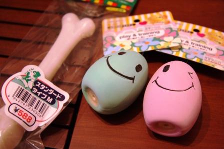 Rが最近Leafと取り合いになっているこの骨っこオモチャとピーピー鳴るオモチャ