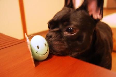 こんな感じでいつもLeafがオモチャをくわえてます。
