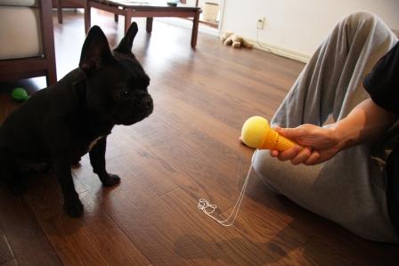 )ハッピーはディスクをじっと見てました。